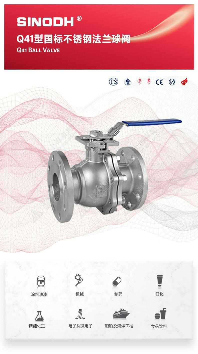 Q41型国标不锈钢法兰球阀,为苏州俊鹏海洋资源开发有限公司自主研发生产。本产品设计制造标准符合GB/T12237、GB/T 1 2224标准该产品的球体在介质压力作用下,球体能产生-定的位移并紧压在出口端的密封面上,保证出口端密封。适用于水、溶剂、酸和天然气等-般工业介质,也适用于工况恶劣的介质,如氧气、过氧化氢、甲烷和乙烯等介质。